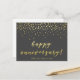 NewParkLane - Personalized Postcard, with 'Happy Anniversary' in elegant brush/ script typography in faux gold, with gold confetti against a dark grey background.