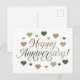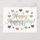Happy Anniversary Green Brown Hearts Rustic Elegan Postcard