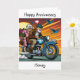 Funny anniversary card for an older couple. An old lady and man riding on a motorcycle. Happy anniversary, I'll always be happy I picked you. Perfect card for an adventurous couple.