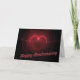 Horizontal format greeting card of a lighted heart illustration over a white background with the black outlined red text "Happy Anniversary." The inside bottom shows a shadow of the heart and there is text you can change.