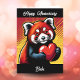 Cute Happy Anniversary card with a pop art Red Panda holding a heart. Cute wedding anniversary card for him or her. Inside says, "love you so much" but that text can be personalized if wanted.