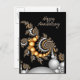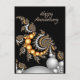 Elegant anniversary postcard with gold, silver, white beads and intricate design on black background.