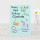 A unique card that you can personalize showing the Birthday months birth stone, flowers and Unicorn Day Day as well as a slice of Birthday Cake and Candle. Personalize with the Name and the message inside can be added to, or removed by following the "personalize this Template" prompt.