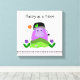 A fun design featuring a whimsical hippo wearing a hat with a flower poking out. A patch of grass with a friendly caterpillar and flowers around. A chain link design accents the corners. The saying 'Happy as a Hippo' can be changed as desired. The images are locked as they are best suite for this size of canvas.
