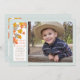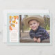A new, fall invitation with a large photo window. The soft gray-green background features a torn-edge panel with autumn leaves that holds your party's information.