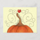 A cute cartoon pumpkin and red heart with a kaleidoscopic texture and swirls on a post card.