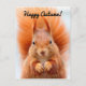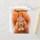 Adorable, close up photo of a red squirrel with message, "Happy Autumn" is featured on this postcard. A cute way to send Autumn greetings to family or friends!