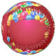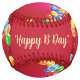 A bold red birthday baseball wrapped in colorful balloons and a cheerful “Happy B Day” script — a fun, festive design perfect for party gifts, sports‑themed celebrations, and playful décor.