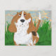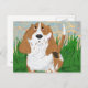 If you or someone you know had a successful Basset Hound Field Trial, a good hunt, or a specialty show win, why not send out some of these lovely Basset Hound postcards with some words of congratulations and encouragement? Featuring a calming illustration of a smiling cartoon Basset Hound standing in a grassy field at sunset, these postcards would be great gifts for Basset Hound lovers.