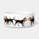 A group of happy Beagle potter about their business. A happy, opitimistic dog design, set against a white background with a distinct 1950's feel to it.