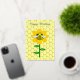 This awesome Foil card features a graphic image of a cute yellow bumblebee with black stripes, eyes, antennae and legs. It has pretty blue and white wings. The bee is sitting on the middle of a golden yellow sunflower. The flower has a green stalk and three leaves. The message "happy bee day" appears spread over the three leaves. The background is composed of a yellow honeycomb pattern. There is custom text on the inside the card so you can personalize this card. The greeting on the front is in beautiful gold foil.