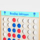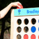 This awesome fast four set features a graphic image of a cute blue bumblebee with bright blue stripes, black eyes, blue antennae and black legs. It has pretty blue and white wings. The bee is sitting on the middle of a pretty blue sunflower. The flower has a green stalk and three leaves. The message "Bee Day boy" appears spread over the three leaves. The sides are composed of a pale blue honeycomb pattern. There is custom text so you can include a name and a message.