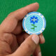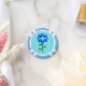 This awesome set of poker chips features a graphic image of a cute blue bumblebee with bright blue stripes, black eyes, blue antennae and black legs. It has pretty blue and white wings. The bee is sitting on the middle of a pretty blue sunflower. The flower has a green stalk and three leaves. The message "Bee Day boy" appears spread over the three leaves. The background is composed of a pale blue honeycomb pattern.