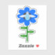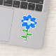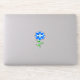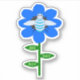 This awesome sticker features a graphic image of a cute blue bumblebee with bright blue stripes, black eyes, blue antennae and black legs. It has pretty blue and white wings. The bee is sitting on the middle of a pretty blue sunflower. The flower has a green stalk and three leaves. The message "Bee Day boy" appears spread over the three leaves.