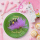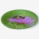 These birthday paper plates feature a beautiful image of a bee gathering nectar from a purple thistle.
