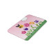 Cute digital design featuring a bumblebee, flowers, grass, and a cloud. Colors include yellow, green, pink, purple, blue, black and white.