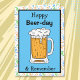 Funny birthday card, with a hand drawn mug of beer and blue and orange confetti. Birthday card for him with funny jokes and puns. Great for a 21st birthday too!
