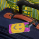 Happy Big Modern Orange Pumpkin on Purple Geometric design for happy travels.