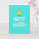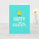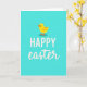 Designed with a bright teal background, this card sets a fresh, upbeat scene that feels like a sunny day shared with someone close 🌷. Near the top, a small stylized bird in warm yellow sits as the main focus, its rounded body and simple lines giving it a sweet, friendly look. A tiny orange beak, a half-circle wing detail, and thin little legs add character, like it’s leaning in with a gentle, affectionate curiosity. A soft shadow just beneath the bird lifts it slightly from the surface, adding a quiet sense of depth. Below the bird, two lines of white text are centered, creating a neat visual path from image to message. The top line is an all-caps sans-serif word with thicker lettering, while the second line is in a looser cursive-style font that feels like a softer reply from a friend 🐇. The white lettering stands out sharply against the teal, and the bird’s sunny yellow remains the brightest spot at the top of the layout.