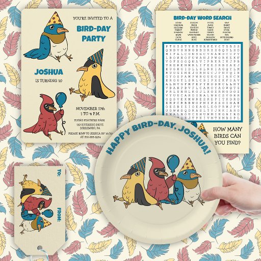 Say "Happy Birthday" or "Happy Bird-Day" as the case may be, in style with this fun patterned wrapping paper. It features balloons and cartoon style illustrations of three birds: a cardinal, a goldfinch and a bluebird who are all ready to party.