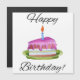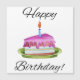 An illustrated slice of birthday cake with a candle and the text Happy Birthday!