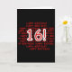 Black, red, and white Happy 16th Birthday design on 16th birthday T-shirts, cards, mugs, buttons, and other 16th birthday items.