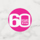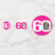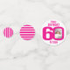 60th birthday bright hot pink and white graphic stripe and text party confetti. Great to add a personal touch to a surprise birthday party. Personalize with three of your birthday boys or girls photos in the 0 of 60 and personalize with your choice of name. Design by Sarah Trett for www.mylittleeden.com