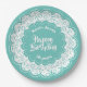 Happy Birthday 70th Teal/White Number Pattern Paper Plates