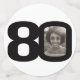 80th birthday black and white graphic stripe and text party confetti. Great to add a personal touch to a surprise birthday party. Personalize with three of your birthday boys or girls photos in the 0 of 80 and personalize with your choice of name. Design by Sarah Trett for www.mylittleeden.com