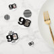 90th birthday black and white graphic stripe and text party confetti. Great to add a personal touch to a surprise ninetieth birthday party. Personalize with three of your birthday boys or girls photos in the 0 of 90 and personalize with your choice of name. Design by Sarah Trett for www.mylittleeden.com