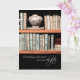 This card reminds the recipient that a birthday is the start of a new chapter in life. Wishes for happiness, love and prosperity for the year ahead is the sentiment inside. The outside features an image of a library bookshelf with rows of books and pottery on a black background. Perfect choice for the avid reader.