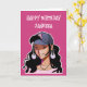 Pink and black personalized birthday card with pretty dark haired ethnic Asian anime girl.