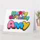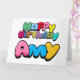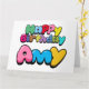 Colourful "Happy Birthday Amy" bubblegum style text.