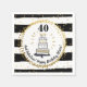 Celebrate the birthday person with these fun and festive paper napkins featuring a hand drawn birthday cake, the birthday year, celebrant's name and custom text, surrounded by a faux gold glitter polka dot circle all set against a black and white stripe background. Trendy, stylish and modern - perfect for any birthday party theme.