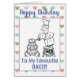Happy birthday to a baker. Baker cartoon. Woman is at top of a stepladder icing a cake. Personalise with your choice of wording and inside message. Ideal funny birthday card for a Baker.