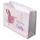 Add elegance and cuteness to your celebration with this ballerina themed gift bag. Whether you're celebrating the birthday of a young aspiring ballerina, hosting a dance recital party, or planning any ballet-themed event and need to pack some presents, this design is a wonderful choice, simply edit the customizable text to make it perfect for you.