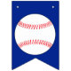 A fun "Happy Birthday" bunting banner for baseball themed birthday parties, with HAPPY BIRTHDAY spelled out across the banner with red and navy blue colors. A great birthday party decor piece for baseball themed birthday parties.
