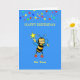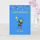 Birthday bee and multicolored stars on sky blue background Birthday Card. Texts can be personalized. Ideal for all ages!