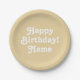 Happy birthday beige custom name photo background paper plates