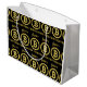 This gift bag feature the words "Happy Birthday" in a unique print font with gold letters light gold displaying a B with a dollar sign look in the center in this cryptocurrency birthday theme and style. All gift bags are made with premium quality paper for extra durability and your choice of matte or glossy finish available in 3 additional sizes great for baby showers, weddings or anniversaries.