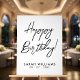 Create your own custom birthday sign featuring modern script calligraphy happy birthday and minimal typography name and date design for personalized birthday decor.
