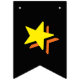 HAPPY BIRTHDAY ☆ BLACK TEXT ON MULTICOLOR BACKGROUND Swallowtail Flag Banner. Spice up your party with this most colorful banner! It makes the perfect decoration for a night-time celebration! Words are separated by yellow star designs!