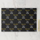 The placemats are black. They have a text pattern for the recipient's name and Happy Birthday. The name (Shown: Elizabeth) appears in an elegant faux (not foil) gold script. The other text is white. All of the text can be edited.