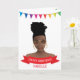 Celebrate your sister, girlfriend, auntie with this card. Colorful gradient banner with Black woman wearing her natural hair & gold accessories. Customize the message on the red ribbon and name.