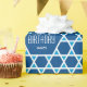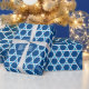 Stylish birthday wrapping paper featuring a Star of David geometric pattern in blue and white. Both the name and the greeting can be customized. Makes a lovely unique gift wrap for family and friends!
