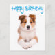 Aww...who can resist the cute face of a Border Collie puppy dog? This fun Happy Birthday greeting postcard features a portrait of a tan and white border collie dog highlighted against a crisp white background. br>