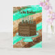 Teal and brown Happy Birthday Card for a brother. Cute hand drawn graphics of chocolate cake, candles and gifts.