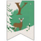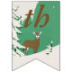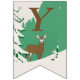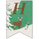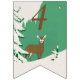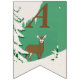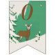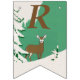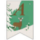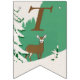This flag shaped bunting Happy Birthday banner has a brown doe standing in the snow next to a tall snow covered pine tree with a deep mint green background. Customize the birthday year with the templates.