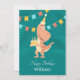 This Happy Birthday Card features a cartoon illustration of cute funny Dinosaur wearing birthday hat and holding cake with three lighted candles. Great Card for kid's birthday! You can easily personalize the text (greeting and name) at the lower part of the Card using Zazzle online tools. If you need help to personalize this card, don't hesitate to contact me via Zazzle, please.