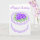 A cheerful birthday cake with purple flowers for friends and family on their special day.